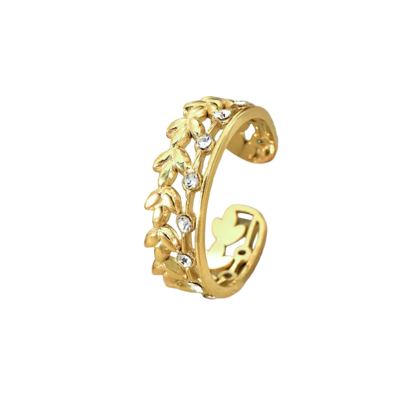 Este Anel Dourado com Cristais é a peça ideal para adicionar um toque de glamour e sofisticação ao seu look. Seu design robusto, mas delicado, é totalmente cravejado, garantindo um brilho deslumbrante em qualquer luz.