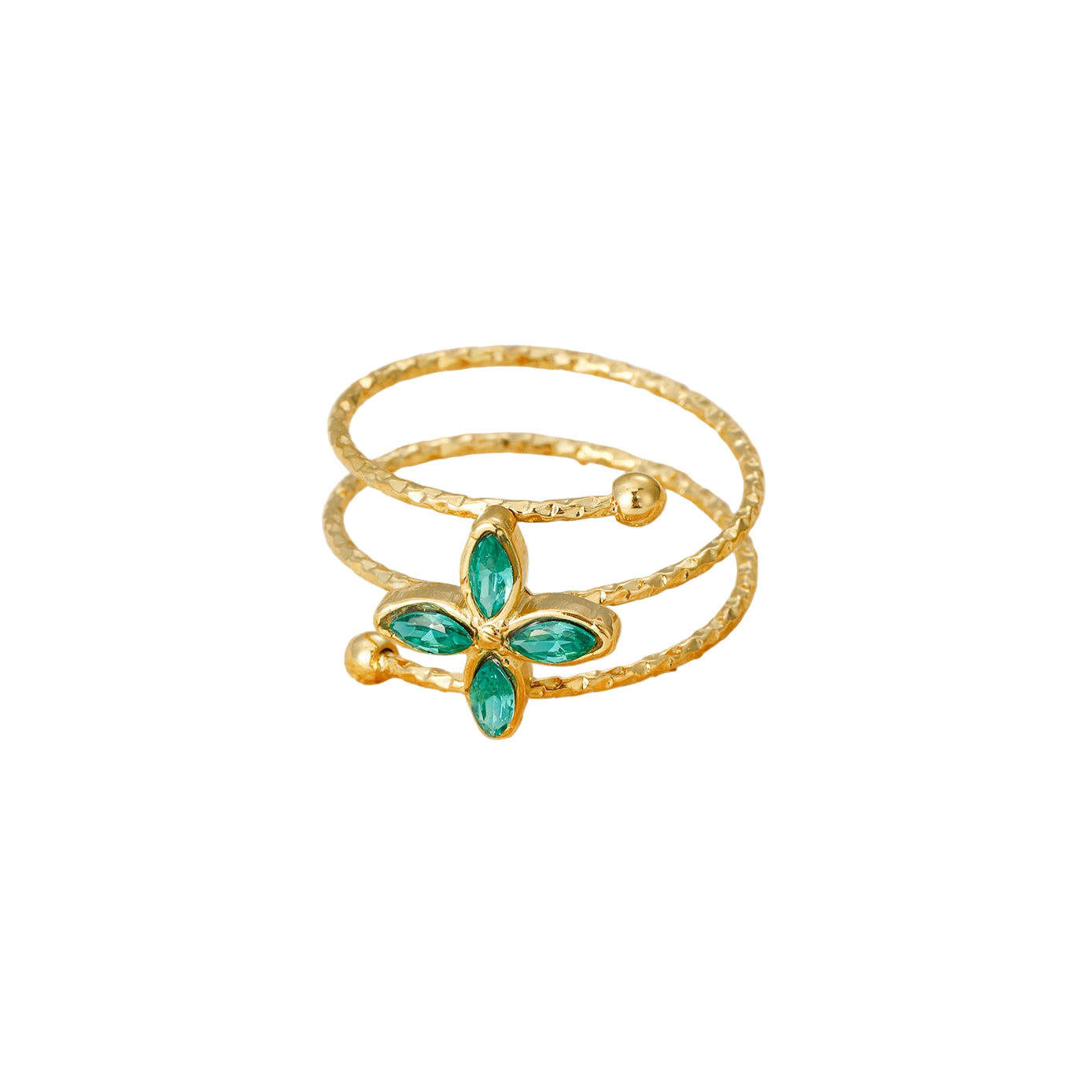 Este Anel de Flor em Cristal Verde é uma joia delicada e vibrante. A união da flor cravejada com a tonalidade verde e o acabamento dourado cria uma peça encantadora, perfeita para adicionar um ponto de cor sofisticado ao seu visual.