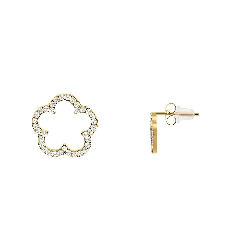 Delicadeza floral com um toque de brilho! Este Brinco de Pino em formato de Flor é um acessório charmoso e romântico, cravejado com Strass para um efeito cintilante e sutil.
