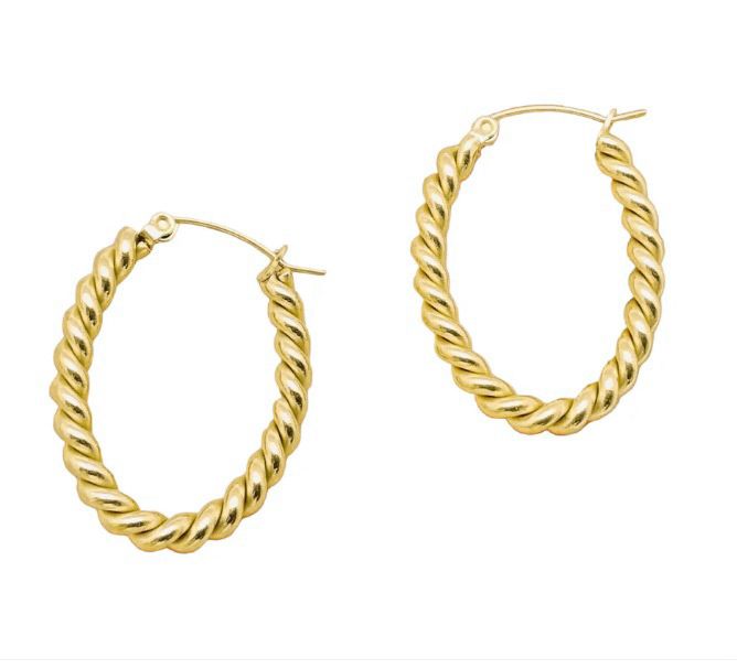 Estes brincos argola apresentam um design oval e elegante, que alonga o rosto com sofisticação. O toque especial fica por conta do acabamento torcido (rope style), que confere volume, textura e um brilho dinâmico ao dourado polido.